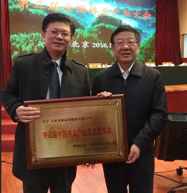 此次大会表彰的主要是为我国林业产业发展取得显著成效,为推进绿色发展、林业供给侧结构性改革和农民脱贫致富作出了重要贡献先进集体和个人。大亚科技集团副总裁眭敏先生代表公司和获奖个人上台领奖。