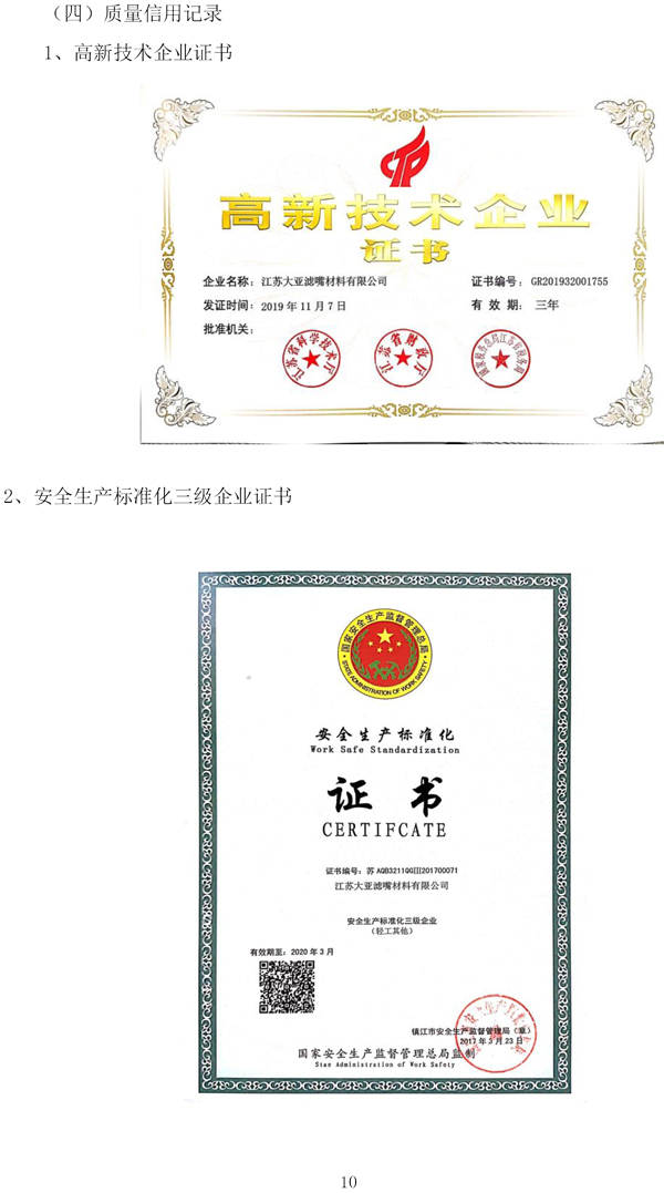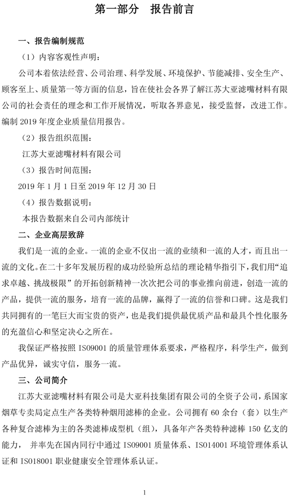企业质量信用报告——江苏大亚滤嘴材料有限公司