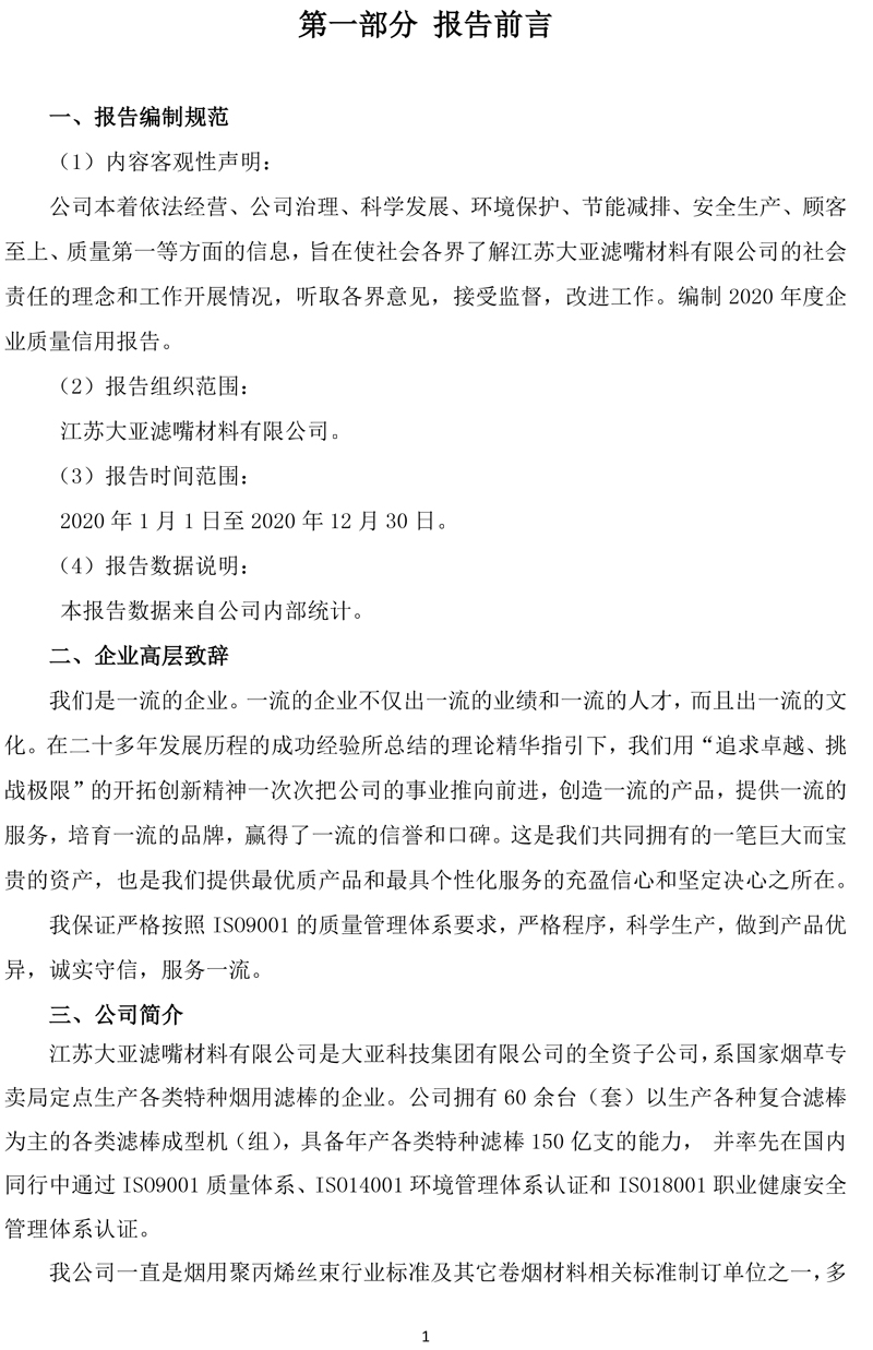 江苏大亚滤嘴材料有限公司企业质量信用报告